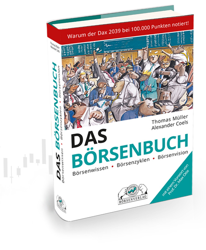 Das Börsenbuch von Thomas Müller und Alexander Coels ist ein absolutes Kult-Buch für jeden, der sich mit den Kapitalmärkten beschäftigt. Am Ende dieses Buches verstehen Sie, warum der Dax vermutlich 2039 erstmals über 100.000 Punkte klettern wird, auch wenn dieser Kurs heute beinahe unvorstellbar schein.